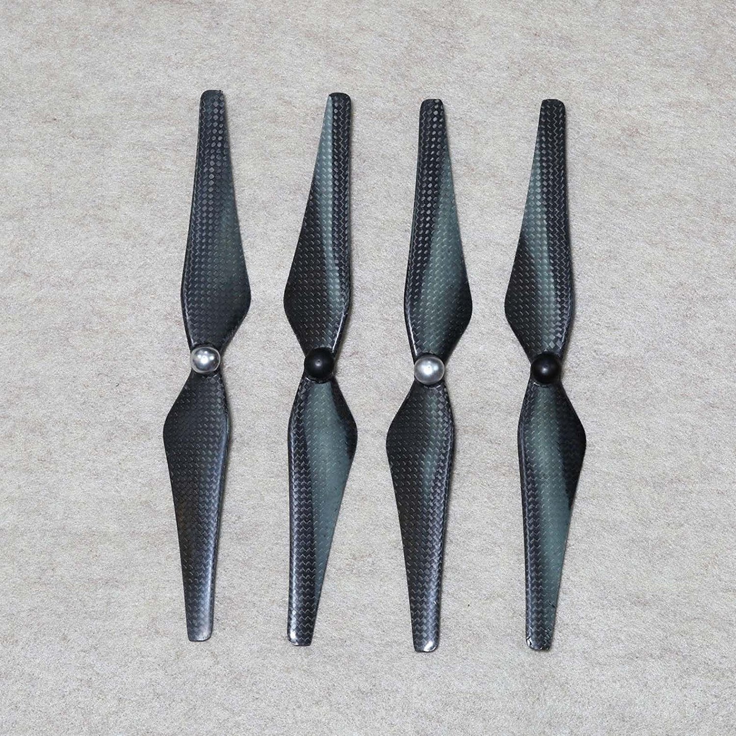 As hélices encontradas no mercado, frequentemente são de plástico (ou nylon) e vêm com diferentes tamanhos (ou diâmetros) e diferentes passos (pitch), também podem ser de fibra de vidro, fibra de carbono com resina ou de um composto de nylon e carbono em pó ou até madeira. As diferenças se refletem basicamente no preço, na flexibilidade e na resistência a choques (em caso de queda ou colisão do drone). Uma comparação entre as hélices de fibra de carbono e as hélices de plástico pode ser vista aqui ou aqui.Formato Das Pás